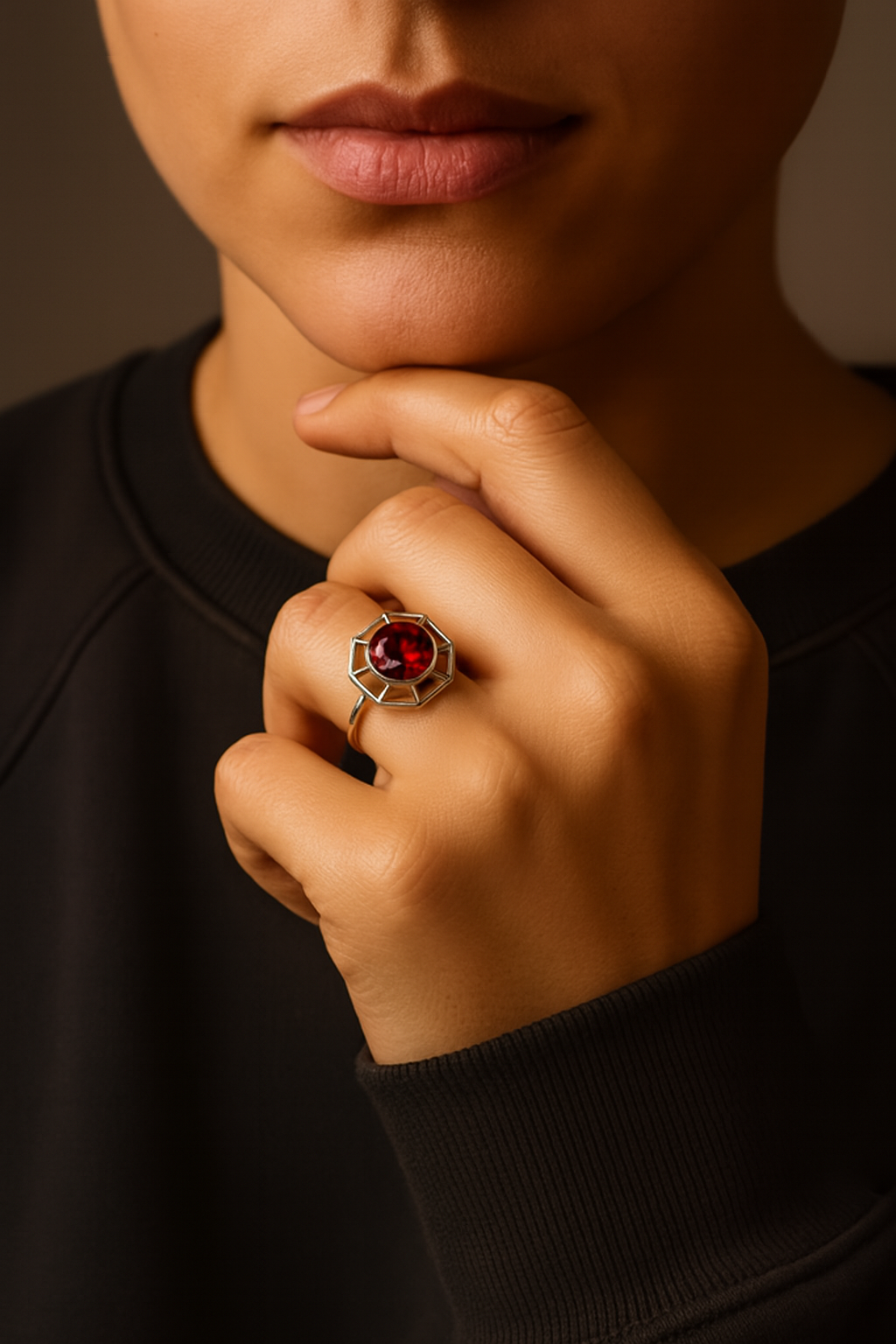 More than jewelry — it’s desire, confined in silver and set aflame with garnet.